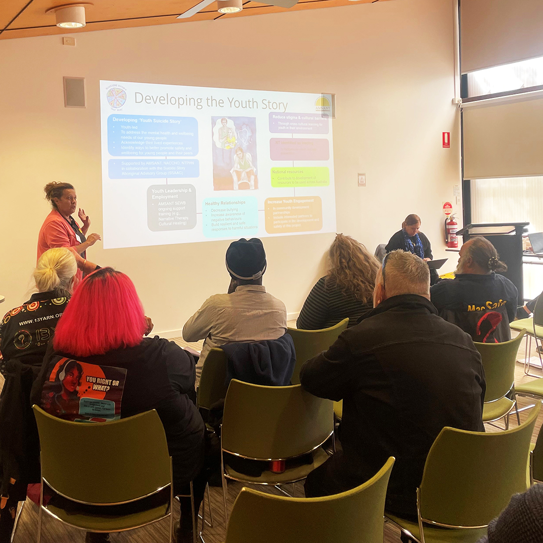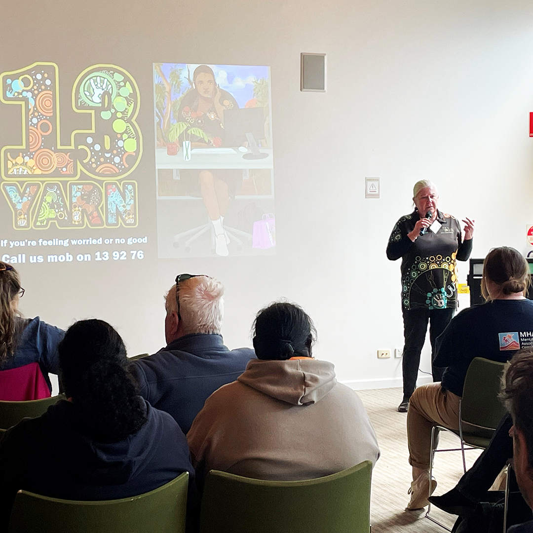 A special thankyou to all of our presenters including 13 Yarn, Aboriginal Medical Services Alliance Northern Territory, MATES in Construction QLD & NT, Central Australian Aboriginal Congress, National Wellbeing Alliance, Northern Territory PHN, MacDonnell Regional Council, Royal Flying Doctor Service SA/NT, Multicultural Community Services of Central Australia, Mental Health Services Central Australia Region, Teddy McDiarmid and Kylie Buzzacott, Alison Cunnynghame, and Code 4 Life at Desert Knowledge Australia